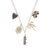 Featuring five luxe charms including a Tigers script, orange paw print, bow, heart, and pendant on a gold-plated paperclip chain — it’s the perfect layering piece or statement solo.