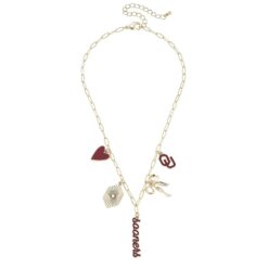 Designed on a trendy gold paperclip chain, this officially licensed NCAA necklace includes 5 luxe charms — including a “Sooners” script, crimson paw, heart, bow, and textured pendant. It’s the perfect combo of game day spirit and everyday glam.